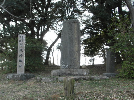 <沿革> 延元三/暦応元年(1338)、勢力挽回を図った南朝の北畠親房は、義良・宗良両親王を奉じて 伊勢国大湊から海路奥州を目指した。しかし、途中暴風雨に遭って両親王とは離れ離れになって しまい、親房一行は常陸国東条浦(茨城県旧桜川村)に漂着した。親房はそこで南朝方の武士を 募り、神宮寺城に入城した。まもなく北朝方の佐竹氏らに攻められ、敗れて阿波崎城へと移った。 阿波崎城が既に存在していた城なのか、このときに築かれたものなのかは不明である。 親房は、阿波崎城で南朝方の後詰を待ちながら抵抗を続けたが、ほどなく落城した。親房らは、 霞ヶ浦を渡って小田城の小田氏を頼った。阿波崎城はそのまま廃城となったものと思われるが、 詳細は不明である。 <手記> 阿波崎城は、野田奈川と新利根川に挟まれた丘陵の先端に位置しています。当時は、おそらく 霞ヶ浦由来の低湿地に周囲を囲まれていたものと推測されます。 現在、本丸は霞南ゴルフクラブの敷地となっており、外丸および八幡台と呼ばれる先端部のみが 残っています。『日本城郭大系』が編纂された頃は、まだ本丸も残っていたようで、逆凸状に土塁 に囲まれた本丸のようすが描かれています。北東の登り口脇には説明板が、外丸跡には城址碑 が建てられています。 石碑のすぐ近くに神社があり、周辺は削平され曲輪を形成しています。ここから先端部を望むと、 両岸が切岸状に切り立っています。おそらく物見台のような場所であったと思われますが、頂部は 非常に細く、大勢の駐屯は不可能です。神社のある曲輪と外丸の間には堀跡が見受けられます。 外丸はやや面積のある曲輪ですが、その西側からすでにゴルフ場となっているため、それ以上の 縄張りについては不明です。 このように、現在目にできる阿波崎城址は、東側3分の1程度の範囲になります。しかし、部分的 とはいえ今残る遺構と縄張りからでも、阿波崎城が北畠親房の撤退後は使用されなかったのでは ないかという点が読み取れるます。残っている箇所の曲輪形成は未熟であり、『大系』の縄張り図 にみえる本丸は、戦国時代の城のセオリーからするとやや不自然です。さらに突っ込んでいうと、 神宮寺城についてもそうなのですが、私は既にあった寺院を取り立てて陣城化したものなのでは ないかと推測しています。土塁に囲繞された寺院敷地を本丸とし、丘陵先端部に手を加えて城塞 化したもの。それが阿波崎城なのではないかと考えています。 |
