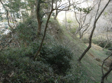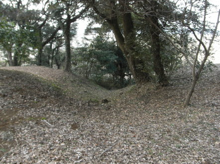 | 神社のある曲輪と外丸の間の堀跡。 | |