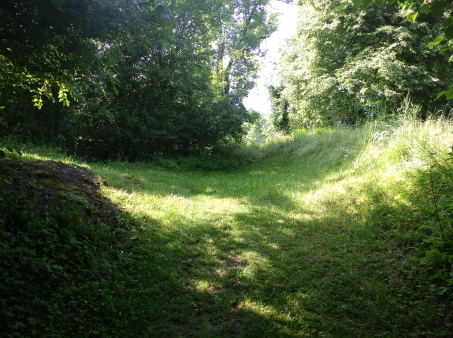 | 副郭と主郭の間の堀切(Halsgraben)。 | |