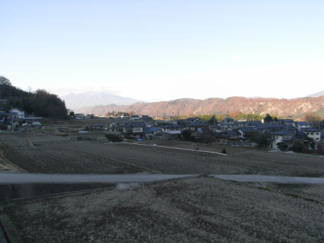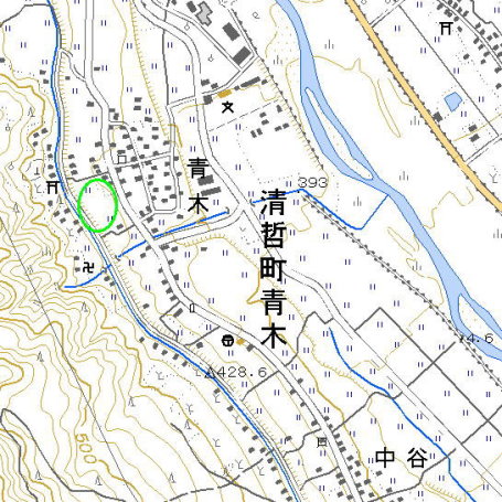 <沿革> 武川衆の一人青木氏の居館とされる。青木氏は、武田氏の支流一条氏の流れを汲む。一条氏は 武田信義の嫡男忠頼にはじまるが、忠頼は源頼朝によって誘殺された。これにより一条氏は一時 断絶するが、信義の五男信光の次男信長によって再興された。 信長の孫時信の子時光が、武川筋の青木に居を構え、青木氏を名乗った。集落南西の常光寺は、 時光の子常光の開基と伝わる。青木氏からさらに武川衆の多くの支族が派生し、青木氏は武川衆 の惣領的立場にあったものと推測される。 『寛政重修諸家譜』によれば、青木信種が白山城を守備し、天文十年(1541)十月に亡くなったと される。同年六月の武田八幡宮造営に関わった奉行のなかに、信種の子尾張守満懸の名がある。 白山城主は、その後信種の次男山寺信明が引き継いだ。 天正十年(1582)に武田氏が滅び、同年に織田信長も横死すると、青木信時は徳川家康に属し、 青木郷を安堵された。信時は満懸の子重満の子とされるが、満懸の兄信立の子ともいわれ、この間 の系譜は判然としない。武川衆7人が連署した永禄十年(1567)の『下之郷起請文』には、青木重満 と青木信秀の名がみられる。このほか、常光寺に残る青木氏墓には信立ではなく信親とあり、信親 の子が信時とある。信時の後、信安−信就までは名が確認できるが、その後の青木氏については 不明である。 ちなみに、信立の三男信俊は青木氏の支流柳沢氏を継ぎ、その孫が徳川綱吉の側近として活躍 した柳沢吉保である。 <手記> 青木集落の常光寺と諏訪神社の間の徳島堰沿いに西屋敷の字が残り、青木氏館はこのあたりに あったものと考えられています。『日本城郭大系』には、地籍図から2ヶ所の館跡ついて推定位置が 示されています。両者を別々の館とみているのか、2つの曲輪をもつ館とみているのかは詳らかでは ありませんが、仮に両者をそれぞれ「北推定地」「南推定地」と呼ぶことにします。 どちらとも、基本的には圃場整備が進んでおり遺構の確認は難しいのですが、まず南推定地の西 に、田圃と道路に囲まれて昔のままの形状と思われる畑地があります。館西辺との関連も考えられ ますが、確定的なことはいえません。南推定地の北端には小沢が流れ、ごく小さな谷戸を形成して います。これを、堀を兼ねた館の遺構とみることもできなくはないでしょう。 つぎに北推定地ですが、こちらは西端に圃場整備から取り残されたようなごく細い畑地があります。 堀跡を利用したものと考えられ、興味深い地形となっています。両推定地とも、遺構のように思われる 箇所は散見されるのですが、表面観察からはどこまで遺構とみてよいか難しいところがあります。 ちなみに、青木は対岸に新府城址を望む緩やかな沢水に恵まれた傾斜地ですが、いわゆる半日村 で、私が訪れた12月には15時を待たずに日陰で暗くなってしまいました。 |