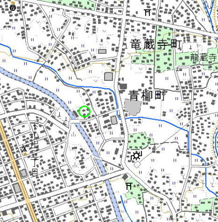 <沿革> 鈴木氏・長沼氏らが拠ったとされるが、両氏について詳細は不明である。 永正六年(1509)、連歌師宗長が「青柳の里」を通って「荒蒔和泉入道宿所」に立ち寄り、 連歌会を催したことが『東路の津登』に記されている。この荒蒔和泉入道の「宿所」が青柳の 寄居を指すとみる向きもあるようだが、この記述からでは何とも判じがたい。荒蒔氏について も、詳細は不明である。 <手記> 青柳寄居は、桃の木川の脇に築かれた館城です。上の地図からも、城跡南西に河川改修 された跡が容易にみてとれ、川の屈曲部の外側に選地されていることが分かります。川端に ありながら河岸からはわずかに内陸に方形の曲輪を形成しているので、おそらくもう1つ外側 に外郭があったのではないかと推測されます。かつては、城跡の周辺に「八幡曲輪」の字が 残っていたようです。 桃の木川にかかる橋には「寄居橋」という名が付けられており、この橋を渡る道路から一本 北側に入ると、住宅の隙間に北辺の堀跡と思しき不自然な小路があります。この小路の西の 突き当りには、堀跡の空き地に建てられたとみられる周囲に比べて明らかに新築のアパート があります。これらの他には、私が歩いて見た限り城跡を示すようなものはありません。 |