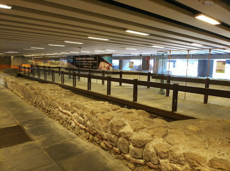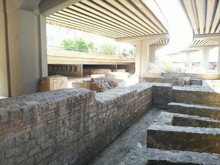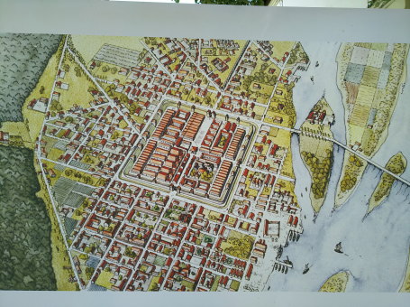 <沿革> 紀元後1世紀にローマ帝国の境界線としてリーメスが建設されると、現在のオーブダの 地に兵営(カストルム)が置かれた。アクインクムと名付けられたこの兵営は、西暦90年 ごろには6000人の兵が駐留する規模にまで拡張された。並行して付近に町場も整備され、 2世紀初頭にパンノニア属州が上パンノニア属州と下パンノニア属州とに分割されると、 アクインクムは後者の州都となった。194年にはアクインクムの市民区が植民市(コロニア) に昇格し、このころには人口3~4万人ほどの都市に成長したと推察されている。296年に パンノニアがさらに4つに分割されると、アクインクムは州都の地位を失った。 4世紀末ごろになると、ローマ帝国はゲルマン民族の大移動やフン族の侵入により圧迫 を受けるようになっていった。433年、西ローマ皇帝ウァレンティニアヌス3世の母ガッラ・ プラキディアと対立したローマの将軍アエティウスは、フン族の王ルーアと協定を結び、 兵力を提供してもらう代わりにフン族のパンノニア支配を認めた。その後、アクインクムの 名は史料からは姿を消した。 9世紀後半からマジャール人がハンガリー平原に入植し、1000年にイシュトヴァーン1世 がハンガリー王に即位したことでハンガリー王国が成立した。その都はエステルゴムに 置かれたが、かつてのアクインクムの近くにも王宮が建設された。この王宮を含む新しい 町は、フン族の王ブレダのハンガリー語名である「ブダ」と名付けられた。 1240~41年にモンゴル帝国軍がハンガリーおよびポーランドを蹂躙すると、ハンガリー 王ベーラ4世は平地にあるブダでは防衛が困難と判断し、南方にある丘に新しくブダ城を 築いた。町場も城山の麓に移転し、残されたかつてのブダは「オーブダ(古ブダの意)」と 呼ばれるようになった。 <手記> オーブダはブダ城の北4kmほどのところにあり、現在はブダペスト市内の1地区となって います。地下鉄または路面電車で国会議事堂対岸のバッチャーニ広場(Batthyány tér) 駅へ行き、そこで近郊列車に乗り換えてセントレーレク広場(Szentlélek tér)駅で降りる と、そこがオーブダ地区の角になります。 オーブダは至って小さな町で、中央広場の周囲に中世風の建物がいくつか立ち並んで いるものの、かつて王宮が置かれていた都の跡という雰囲気は感じられません。4人の 傘を持った女性の彫像『雨の散歩』をはじめ、彫刻が点在しているのが現在のオーブダの 観光の見どころです。 中央広場から西に入ると、共産主義時代風の集合住宅の前庭にローマ時代の遺跡が 現れます。周囲はただの団地という感じなので、ちょっと突拍子もない感じもします。ここ には説明板もあり、当時のアクインクムのようすがイラストで描かれています。説明板に よれば、ここはアクインクムの兵営の東辺にあたるようです。 さらに西に向かうと大きなバイパス同士の立体交差点があります。ここを渡るには地下 道を通らなければならないのですが、この地下道により大きな遺跡が展示されています。 おそらく、立体交差建設に際して発見・発掘されたものと思われます。説明板によれば、 ここはアクインクム兵営内の浴場および殿舎跡と考えられてるようです。遺跡内には見学 ルートも整備されていて、内部を歩いて巡ることができます。 私はもともとこの場所のことは知りませんでした。オーブダ観光のついでに絵はがきを 出そうと道行く人に郵便局はどこか訪ねたところ、交差点の向こうのショッピングモールに あるとのこと。その途中で偶然に見つけた次第です。こうしてふとしたことで城跡の遺構に 出会えるというのは、なんとも嬉しいものです。 ちなみに、オーブダの北2kmほどのところにはその名も「アクインクム」という地区があり、 ここにも遺跡とアクインクム博物館という施設があります。今となってはなぜか私はこちら にも気づかずじまいでした。こちらの遺跡は兵営に対する市民区とみられているそうです。 オーブダが建設されたことで兵営部分は埋まってしまい、また歴史的にも市民区の方が 長続きしたでしょうから、古くからこちらが単にアクインクムとして語り継がれてきたものと 拝察されます。 |