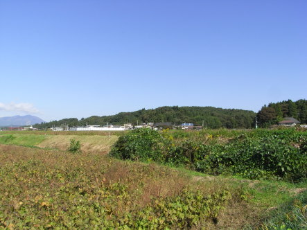 馬場城址現況。右端の森の上方に江六城があります。 |
