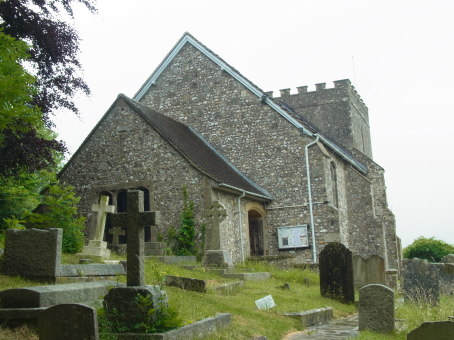 <沿革> 現地説明板によれば、ブランバー領主ウィリアム・ド・ブラオーズ(William de Braose)に よって1073年ごろに築かれたとされる。ウィリアムはもともとフランスのノルマンディー地方 ブリウーズ(Briouze)の領主で、ノルマンディー公ギヨームによるノルマン・コンクエストに 従軍し、ギヨームがウィリアム1世としてイングランド王となるに及んで、ブランバーの封建 貴族(feudal baron)として取り立てられていた。 初代ウィリアムの曽孫の4代ブランバー領主ウィリアム・デ・ブラオーズは、イングランド王 ジョンといさかいを起こした。理由については定かでないが、ジョン王の甥アーサー・オブ・ ブリタニーの死を王による暗殺とする噂が広がっていたことについて、ウィリアムの妻モード が軽率な発言をしたためともいわれている。ジョン王はウィリアムの忠誠心を試すために、 息子を人質に差し出すよう要求した。だが、モードはこれを拒絶したばかりか、王の従臣に 聞こえよがしに「甥殺しの王に誰が我が子を渡すものか」と言い放ったとされる。1208年、 ジョン王は速やかに兵を差し向け、ド・ブラオーズ家の城を次々と落としていった。モードと その長男はアイルランドへ逃れたが、1210年に捕えられウィンザー城へ送られた。次いで コーフ城へ移されたモード母子は、城内の牢獄で餓死した。 この事件はジョン王に対する イングランド諸侯の反発を強め、1215年のマグナ・カルタ(大憲章)成立と続く第一次バロン 戦争の遠因となった。 その後もド・ブラオーズ家自体はブランバー城主として存続したが、1326年にウィリアム 7世が男子無く没すると、娘婿のジョン・ド・モウブレイが跡を襲った。モウブレイ家は後に 初代ノーフォーク公爵家となった。 1483年にイングランド国王エドワード4世が死去すると、その子エドワード5世が王位を 継いだ。エドワード5世の弟のリチャードは、モウブレイ家当主ジョン・モウブレイの一人娘 アンと結婚していたため、ノーフォーク公を継承していた。しかし、エドワード5世とリチャード はロンドンへと向かう途中で叔父のグロスター公リチャードに捕えられ、ロンドン塔に幽閉 された。兄弟は公式にはそのまま消息不明になったとされ(暗殺されたとみられている)、 グロスター公リチャードはリチャード3世として国王に即位した。ノーフォーク公は、リチャード 3世の側近でモウブレイ家庶流のハワード家に与えられたが、ブランバー城はもはや顧み られることはなく、16世紀までには廃墟となり、城内の石は建材として持ち去られていった。 イングランド内戦中の1642年ごろ、議会派によってブランバー城址が占拠され、小競り 合いが生じたとする記録がある。ただし、このとき議会派が主として立て籠もったのは、 城跡の脇の教会とみられている。 <手記> ブランバーはイングランド南岸のリゾート都市ブライトンの北西に位置するアドゥー川沿い の小さな町です。城山は今は川から少し離れていますが、当時はすぐ麓まで湿地が入り 込んでいたものと推測されます。 ノルマンコンクエスト直後に築かれた城は、ほかにもアランデル城やルイス城などがあり ますが、「モット・アンド・ベイリー」という当時の様式をもっとも色濃く残しているのは、この ブランバー城ではないでしょうか。モットとは小さな丘、ベイリーとは堀や城壁に囲まれた 空間(日本でいうところの曲輪)を意味します。すなわち、独立丘の斜面をぐるっと横堀状 に掘り込み、その土を盛って塁と成し、その内側を城内としたものです。いわゆる掻き上げ の城に近いもので、短期間で築ける利点があり、この時代にとくに好んで用いられていた ようです。 とはいえ掻き上げの城ですから、実戦には便利でも居住や威厳を示す目的にはあまり 向いていません。なので近世以降まで残っているような城は、改修によってモット・アンド・ ベイリーの特徴は薄くなっています。ブランバー城は比較的早い段階で打ち捨てられた ため、中世の貴重な城砦のようすを今に残しています。 説明が長くなりましたが、実際に訪れてみれば中世城郭ファンなら歓喜を声を上げず にはいられないでしょう。なにしろ城山の周囲をぐるっと深い薬研の空堀が巡っているの ですから。トップ写真のようにここだけ切り取れば、日本の城跡といってもまず疑われない でしょう。城内に入るとすぐに、今の城跡のシンボルである崩れかけた塔の高い壁面が 現れますが、私のような中世城郭好きなら、むしろ空堀の方に感動するはずです。 城内はかつてぐるっと城壁に囲まれていて、それに沿って建物が並んでいました。曲輪 の中央にはさらにプリンを盛ったような丘があり、おそらくここには主塔(英語ではキープ) が建っていたものと思われます。今では遺跡としてほんの一部が残る程度ですが、城跡 としては雰囲気充分です。 城内への入口の脇には、城付きの礼拝堂として建立された聖ニコラス教会があります。 この教会は