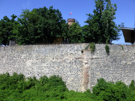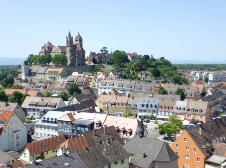 <沿革> フライブルク城主ツェーリンゲン公ベルトルト5世は、1198年に神聖ローマ帝国皇帝ハインリヒ6世が 薨去すると次期皇帝候補の一人となったが、選出の見込みがないと悟ると候補を辞退する代わりに、 ブライザハを含む多くの領地や代償金を獲得した。ベルトルト5世はブライザハの丘に城を築いたが、 1218年に男子なく没してツェーリンゲン家の男系は断絶した。 ブライザハ領は帝国に収公され、1254年にドイツ王コンラート4世が早世して大空位時代を迎えると、 バーゼル司教が支配者となり、城を騎士の館に改装した。1273年にハプスブルク家のルドルフ1世が ドイツ王となると、1315年にブライザハ城は帝国の直轄城(ライヒスブルク)とされた。1469~74年の 間はブルゴーニュ公国の抵当となっていたが、それ以外は帝国の城代が派遣されたとみられる。 1500年ごろから町全体の城塞化が図られ、1614年以降は近代要塞へと改修された。三十年戦争 さなかの1633年、ブライザハはオットー・ルートヴィヒ・フォン・ザルム=キーブルク=メルヒンゲン 率いるスウェーデン軍に包囲された。1638年にもヴァイマル軍に包囲され、帝国は深刻な食糧不足に 陥っていたブライザハに援軍を送ったが、8月9日のヴィッテンバイアーの戦いでヴァイマルとフランス の連合軍に敗れた。ブライザハ要塞はなおも抵抗を続けたが、援軍の見込みがなくなったため、12月 17日に降伏を余儀なくされた。 1648年のヴェストファーレン条約により、ブライザハは正式にフランス領となった。17世紀末葉には、 フランスの要塞設計家として名高いヴォーバンの下、ブライザハ要塞は大きく拡張された。1673年と 1681年には、フランス国王ルイ14世も視察に訪れている。1697年、大同盟戦争に伴うレイスウェイク 条約によってブライザハはハプスブルク帝国に返還され、フランスはライン左岸防衛のために新しく ヌフ=ブリザック(新ブライザハの意)を建設した。 1703年、スペイン継承戦争に伴ってライン川を渡ったフランスのヴィラール公の軍勢によって包囲 されたブライザハ要塞は、激しい攻防の末に陥落した。1714年のバーデン条約を経て返還されたが、 このときの全権もヴィラール公であった。 オーストリア継承戦争さなかの1741年、フランスが対墺参戦してライン川を渡ると、ハプスブルク家 にはブライザハを守備するだけの兵力が不足していたため、マリア・テレジアは要塞の破棄を命じた。 フランス軍はブライザハを占領し、1745年のドレスデン条約を受けて撤兵したが、その際に改めて 要塞を爆破している。1793年に、残っていた城塔もフランス革命軍の砲撃を受けて破壊され、城塞と しての役割を完全に喪失した。 <手記> ブライザハはフライブルクとフランスのコルマールのちょうど中間に位置するライン川沿いの国境の 街です。もともとはミュンスターベルクという縦に長い丘の上に造られた街で、丘の南端にシンボルと なっている聖シュテファン修道院が建っています。とはいえ山上は不便だからか、旧市街の中心は 修道院の麓、エッカールツベルクとの間に移っているようで、丘の上には店らしいものはなく、静かな 住宅地となっています。 修道院と反対側の丘の北東端に、狭義のブライザハ城跡があります。すなわちベルトルト5世以来 の城館跡で、現在は野外劇場となっているようで、ハリボテの宮殿やミニチュアの塔が建っています。 一番の見どころは西側の空堀でしょう。今は南側から地続きで城内に入れますが、当時は西辺から 南まで空堀で隔絶されていて、北西端から橋が渡されていたようです。 このほか、丘の北西端にはカプフ門、南端にはハーゲンバッハ塔といった遺構もみられます。東麓 には気付きにくいですが、要塞時代の城壁も残っています。要塞時代の名残はほとんどないものの、 ライン川対岸のフランス側には、ブライザハ防衛のための稜堡の一部が残っているのが、グーグル マップの衛星写真でも確認できます。 ブライザハとコルマールの間はバスが運行されていて、途中に世界遺産にも登録されているヌフ= ブリザックがあります。コルマールやフライブルクを巡る際には、ぜひ併せて立ち寄ってみてください。 |