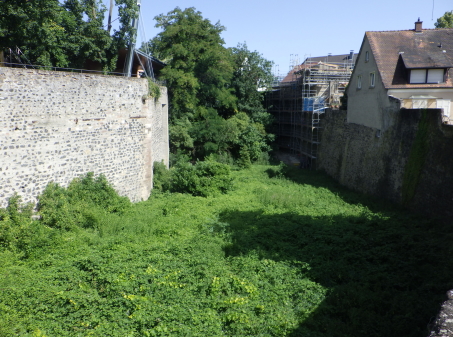 | ブルクヴェークから堀越しに城壁を望む。 当時はここに橋が架かっていたそうです。 |