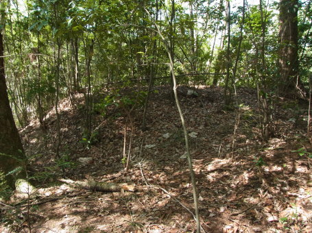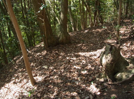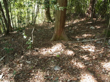 | 山頂の主郭と思しき曲輪と土塁(右手から奥)。 | |