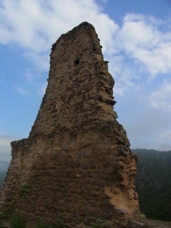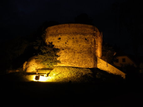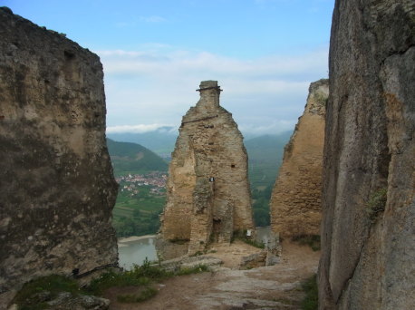<沿革> 12世紀半ばごろ、キューンリンク家初代ハートマール1世によって築かれたとされる。 ハートマール1世は、キューンリンク家家祖とされるアッツォ・フォン・ゴーバツブルクの子 ニッツォの子である。アッツォが、テーゲルンゼー修道院からデュルンシュタイン周辺の 土地を獲得したとされる。 キューンリンク家は、オーストリア公の家臣(Ministeriale)として仕えていた。ハート マール1世には子がなく、甥のハートマール2世が後を継いだ。1192年、ハートマール 2世は主君レオポルト5世の命により帰国途中であったリチャード1世(獅子心王)を捕え、 デュルンシュタイン城に幽閉した。前年の第3回十字軍に際し、レオポルト5世がアッコ を攻め落とした際に掲げた旗を、リチャード1世が叩き落としたことが原因とされる。翌年、 リチャード1世は神聖ローマ皇帝ハインリヒ6世に引き渡された。 その後、キューンリンク家からデュルンシュタイン家が分れたとみられているが、1355 年にデュルンシュタイン家は無嗣断絶した。城はオーストリア公ハプスブルク家の所有 となった。1573年、神聖ローマ皇帝マクシミリアン2世は、宮廷財務長官(Hofkammer) のライヒャルト・シュトロイン・フォン・シュヴァルツェナウにデュルンシュタインを与えた。 1588年、シュトロインによって麓の居館も要塞化され城中に取り込まれた。 三十年戦争末期の1645年に、デュルンシュタインはレンナート・トルステンソン率いる スウェーデン軍に占領された。同年、ボヘミアへ向かうことになったトルステンソンは、 デュルンシュタイン城を爆破した。1662年には、オスマン・トルコ軍侵攻の際の避難所 として「デュルンシュタイン宮(Dürnstein Schloss)」の名がみられるため、現地説明板 ではこの間に城が修築された可能性を示唆している。他方で、城中の建物(Burghaus) については居住不能とされており、今日に至るまで倒壊寸前の廃墟のままである。 <手記> デュルンシュタインは、ヴァッハウ渓谷の東の入口にある山と川に挟まれた小さな町で、 城は町の背後の山上に完全な廃墟として佇んでいます。町自体も城壁で囲まれた中世 さながらの古い街並みを残していて、城壁は登り石段のように山の上の城跡まで続いて います。 中世の面影を残す町デュルンシュタインは、渓谷クルーズの発着点やヴァッハウワイン の産地として人気の観光スポットです。私の手持ちのガイドブックには「ケーンリンガー 城址」として載っていますが、日本語の読みはどちらかというと「キューンリンガー」に近い と思います。そもそも、キューンリンク氏の城には違いはないですが、その居城キューン リンガー城は別にちゃんと存在してますし、地元でその名称を耳目にしたことはないので、 デュルンシュタイン城とするのが結局正しいものと思われます。 町から登城路を上がっていくと、まずは出丸のような岩に囲まれたスペースに出ます。 ここの付け根には井戸跡があります。ここからさらにしばし登ると、城門を2つほど抜けて 城の中庭(Hof)に出ます。主城域は、中庭と主塔の大きく2つの部分から成っています。 中庭から上は完全な廃墟で、至るところに「自己責任で」と書かれています。といっても、 建造物はほとんど壁しか残っておらず、廃墟の上を歩き回るわけではないので、そこまで 危険というわけでもありません。 主塔は、中心に山頂の岩が天を衝くように聳えていて、その周囲を石壁が囲う形で建て られていたようです。現在ではこの岩の頂が城内最高部となっていて、一応その上まで よじ登ることができます。ここからは、ヴァッハウ渓谷が一望できて壮観です。周囲の岩山 は、なんだか欧州というより中国のようにも感じられます(行ったことはありませんが)。 このように、デュルンシュタイン城は有数の観光地にあるにもかかわらず、廃墟のまま うまく保存されている素晴らしい城跡だと感じました。オーストリア観光の際にはウィーン からもさほど遠くないので、幽閉されていたリチャード1世も堪能したといわれるヴァッハウ ワインをお土産に、ぜひ訪れてみてはいかがかでしょう。 |