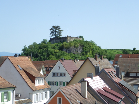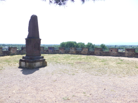 <沿革> 丘の名は、5世紀のこととされる「忠実なるエッケハルト」の伝説にちなんでいる。それによれば、 ブライザハの丘にはハーレルング王が城を構えており、多大な財産を所有していた。王が没すると エッケハルトがその遺児を養育したが、ローマ王エマネリヒが財産を狙って侵攻を企てた。これを 知ったエッケハルトは戦いに備えて食料の調達へ出たが、その隙にエマネリヒは兵を率いて城を 占領し、ハーレルング王の子らを処刑した。エマネリヒが財宝を奪って撤退した後にブライザハへ 戻ったエッケハルトは、怒りと失望のあまり周辺で500人ほどの帝国兵を殺して回り、自らの死に 場所としたとされる。ただし、登場人物はいずれも実在が確認できず、伝説の域を出ない。 史料上は、1139年にエカルディ山(mons Hechardis)として初めて登場する。当時はバーゼル 司教の領有であったようで、12世紀末に丘の半分が神聖ローマ皇帝ハインリヒ6世に譲渡され、 エッカールツベルクには商人と兵士のみが居住を認められていた。エッカールツベルクはもともと ブライザハ城やブライザハの丘の街とは別個の山であったが、14世紀に都城が築かれると、その 内部に取り込まれた。1500年ごろから町全体の城塞化が図られると、エッカールツベルクに城砦 が設けられ、1614年以降は近代要塞の稜堡へと改修された。 オーストリア継承戦争さなかの1741年にフランス軍がブライザハを占領し、1745年のドレスデン 条約を受けて撤兵したが、その際にブライザハの要塞を爆破した。その後は、顧みられることなく イモ畑などになっていたとされるが、1806年にオベリスクを備えた記念碑が建造された。これは、 ブライザハおよびブライスガウがモデナ=レッジョ公国から、後にバーデン大公国となるバーデン 選帝侯領に移管されたことを記念して建てられたものである。バーデン大公家と祖先を同じくする ツェーリンゲン公ベルトルト5世は狭義のブライザハ城を築城した人物であり、碑文にもツェーリン ゲンの土地がバーデン選帝侯カール・フリードリヒの手に返還されたと記されている。 <手記> ブライザハ城のあるミュンスターベルクから現在の旧市街を挟んだ南側の丘が、エッカールツ ベルクです。頂部には件の記念碑が建ち、周囲は方形の城砦のような造りとなっていますが、 これは記念碑と共に建造されたもので遺構ではありません。丘の南方にはブドウ畑が広がり、 要塞の時代には稜堡や堀があったようですが、今ではきれいさっぱりなくなっています。 今日のエッカールツベルクはブライザハの旧市街とミュンスターベルクを見渡す展望スポットと なっており、城砦跡として訪れる人はまずいないでしょう。正面に聖シュテファン修道院が雄大に 建っている景色は、ブライザハで唯一無二といえます。 |