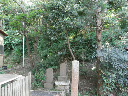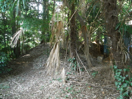 | 主郭南西の土塁。 右手奥に「山田右京之進城跡」と書かれた城址碑があります。 |