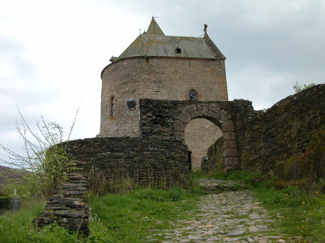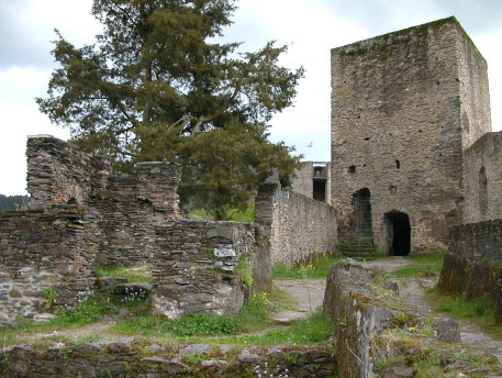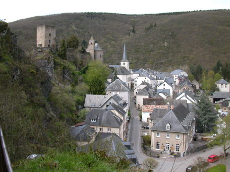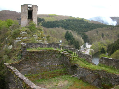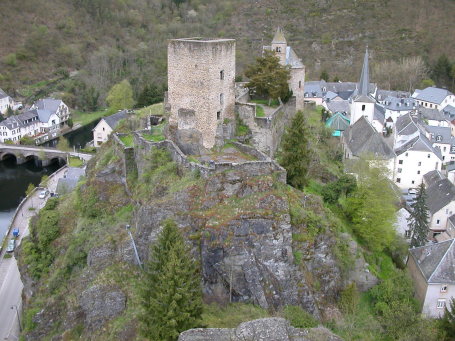 <沿革> 927年6月、スタブロー修道院からこの地を譲り受けたメギナウトによって、8m×8mの居住用の 塔が建てられたのがはじまりとされる。 子孫はエッシュ=ザウアー家を名乗ったとされ、11世紀末にはハインリヒとゴートフリートの兄弟 が第1回十字軍に参加している。彼らによってエッシュ=ザウアー家は最盛期を迎えたとみられ、 19の村々を支配したとされる。 15世紀に入ると、火薬の普及により村を囲う城壁が築かれ、城内には円塔が建設された。この ころには、村の統治はエッシュ=ザウアー家からブランデンブルク家とファルケンシュタイン家、 およびクローネンブルク家の共同統治へと移っていたといわれる。 しかし、16世紀中ごろから城は朽ちはじめたといわれる。1685年に、ルイ14世によってルクセン ブルクが占領されると、領内諸城の廃城令が出された。ただし、エッシュ=シュル=シュールに おいては家々が城壁と切り離せない形で増築されていたため、破壊は徹底されなかった。 19世紀中ごろに、城はエッシュ=シュル=シュール市民の所有となった。1871年にフランスの 小説家ヴィクトル・ユーゴーが訪れた際、城内には何組かの家族が住みついていた。1893年には 城跡は国有地となった。 <手記> エッシュ=シュル=シュールは、馬蹄状に蛇行するシュール川に囲まれた小さな村です。川に 向かってせり出した岩山の周囲に、身を寄せ合うように家々が立ち並んでいます。伝統的には エッシュ=ザウアーというのが正しい呼び方のようですが、今日ではエッシュ=シュル=シュール の方が一般的となっているようなので、城の名称もそちらに合わせました。 城は、村を見渡せる岩山の上に、ほとんど廃墟あるいは遺跡といった感じで佇んでいます。とは いえ、全体像をうかがうには十分な残り具合で、城に詳しくない人でもノスタルジーに浸ることが できます。 村へはエッテルブルック駅からバスを利用するのですが、途中は延々となだらかな丘と森が続き、 とても牧歌的な景色が広がります。ただ、田舎のバスとて本数が少ないので、時間には注意です。 宿泊施設は村に2軒しかありません。 私はそのうちの1軒に泊まったのですが、村の朝は靄に覆われてとても幻想的でした。森と泉の 国の暮らしを味わうにはうってつけのところだと思いました。ちなみに、ルクセンブルクは言語的に 難しいところで、街中はともかく、この辺ではフランス語しか通じないようです。 |