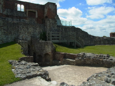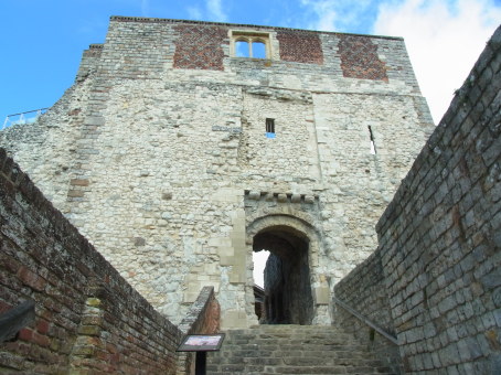 <沿革> 1138年、イングランド王ウィリアム1世(征服王)の孫でウィンチェスター司教のヘンリー・ オブ・ブロワによって築かれた。1155年にイングランド王ヘンリー2世によって一度破城され たものの、12世紀末に再建された。 築城以来800年以上、ファーナム城はウィンチェスター司教の居城であり続けた。有名な 人物としては、ジャンヌ・ダルクの身柄を引き受け、フランスとの百年戦争を終わらせようと 尽力したヘンリー・ボーフォートがいる。 1215年に第一次バロン戦争が勃発すると、翌1216年に反乱諸侯側が擁立したフランス 王太子ルイ(のちのフランス国王ルイ8世)麾下のフランス軍により、ファーナム城はおよそ 10か月にわたって占領された。 1642年に第一次イングランド内戦が始まると、ファーナム城は議会派が保持した。国王 チャールズ1世の地盤であるイングランド西部と、王党派の多い南東部の連絡を遮断する 重要な拠点として機能した。1647年に同内戦が終結すると、翌年にファーナム城は再び 破城となった。 1660年、チャールズ2世が即位してイングランドが王政復古すると、ウィンチェスター司教 ジョージ・モーリーはファーナム城の司教館を再建した。しかし、12世紀来のモット・アンド・ ベイリー形式の主城域は朽ちるに任せていった。 上述の戦争期を除き、築城以来800年以上にわたって、ファーナム城はウィンチェスター 司教の居城であり続けた。有名な城主としては、15世紀にジャンヌ・ダルクの身柄を引き 受け、フランスとの百年戦争を終わらせようと尽力したヘンリー・ボーフォートがいる。 <手記> ファーナム城は、テムズ川の支流ウェイ川の河岸段丘の一角にあります。ファーナムの 市街の背後に建ち、街のシンボルにもなっています。城跡のうち、今の残る司教館は会議 や研修などの会場として利用されていて、自由に立ち入ることはできません。廃墟となって いる主城域は、イングイッシュ・ヘリテージの管理下で一般に公開されている。素晴らしい のは、多くのイングリッシュ・ヘリテージ所属の城館では高額の入城料が必要なのに対し、 ファーナム城跡は無料だということです。だからといって保存や整備が他より甘いということ もありません。代わりに、入口に保存費用を募る集金箱があったので、日本での入城料に 照らして適正と思われる金額を投じてきました。 主城域は丘の周囲を堀と城壁でぐるりと囲んだ典型的なモット・アンド・ベイリー形式で つくられています。最初は中心部に主塔(キープ)があったものの、1155年の時点で取り 壊され、以後再建されることはなかったようです。代わりに、ベイリー(曲輪)周囲の城壁を 高く堅固にし、主城域そのものが円形のキープのようになっています。イングリッシュ・ヘリ テージでの登録名も、正確には「ファーナム・キャッスル・キープ」となっています。 もともとあった丘を利用しているので、外から見ると石造の塔ですが、内部はかなり上部 まで土が詰まっているという特異な形状をしています。そのため、主城域への唯一の入口 は、外からは普通の城門ですが、埋門になっています。 城内は完全に遺跡で、門の城壁にだけ途中まで登れます。ここからの眺望はなかなか で、司教館に隠れてファーナムの街は見えないものの、サリーやハンプシャーの穏やかな 緑の原野を望むことができます。 中心部の旧主塔跡には井戸跡があります。城の存続期間を通じて重要な水源であった もので、今は涸れているもののそこまで見通すことができます。かなりの深さがあり、縦柱 のない木製の階段を伝って途中まで下りられるのですが、なかなかのスリルです。 入城口の外側には資料館もあります。小さいながらも展示はしっかりしていて、こちらも なんと無料です。訪れる人も多くはなく、個人的にとてもおすすめの城跡です。 |