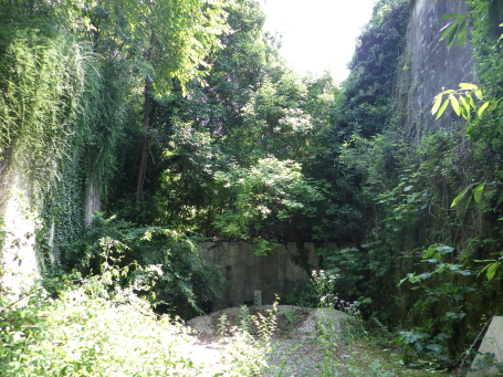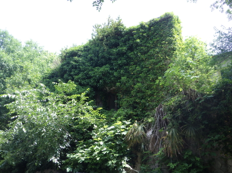| 堀切脇の蔦生した建物。 | |