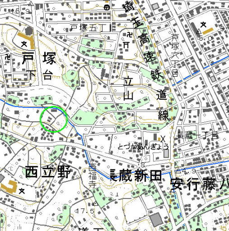 <沿革> 『新編武蔵国風土記稿』に記載はあるものの、位置および城主については不明とされている。地元の 伝承によれば、後北条氏家臣藤波和泉守が城主であったとも、戸塚城主小宮山氏の家人が居住して いたともいわれるが、詳しいことは分かっていない。 戸塚安行駅西口一帯を長蔵新田村というが、これは江戸時代初期に当地を開いた藤波長蔵に由来 している。長蔵の先祖が和泉守とされ、村の口伝によれば、和泉守は立野村に住み萱野奉行を務めて いたとされる。 <手記> 藤波陣屋は、現在もなお正確な所在地は明らかではありませんが、一の橋放水路に面した台地上 にあったものと推測されています。一の橋放水路の流れる戸塚城址との間の谷筋には、現在ほどでは ないでしょうが、かつて小川があったものと思われます。比定地は舌状の小台にあり、急速に宅地化が 進められているようです。そのため、ところどころ土塁跡や削平地に見えるような部分があるのですが、 造成によるものなのかどうかまったく判別できません。 藤波陣屋は北条氏家臣藤波氏の城館跡と伝えられていますが、これが正しいとすると「陣屋」という 呼称に少し違和感を感じます。江戸初期に藤波長蔵が同じ場所にいたことを鑑みると、北条氏が滅亡 し徳川家康が関東に入封した後も、藤波氏は当地に留まり、同じ館に居住し続けていたとも考えられ ます。 |
