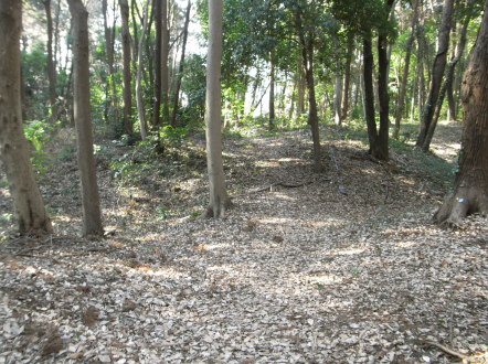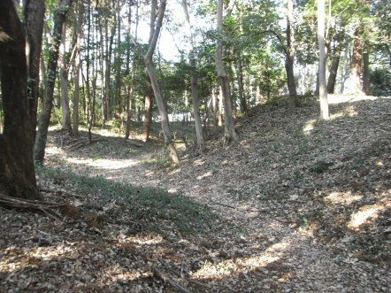 | 帯曲輪と二重の空堀。 その奥に主郭の東側虎口があります。 |