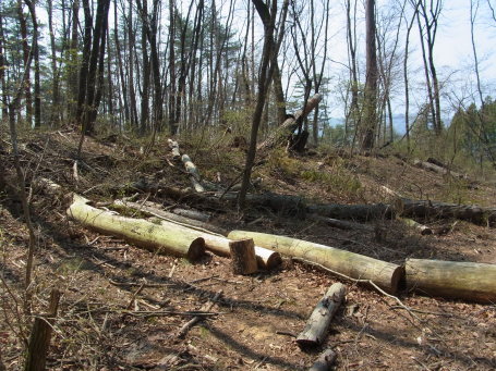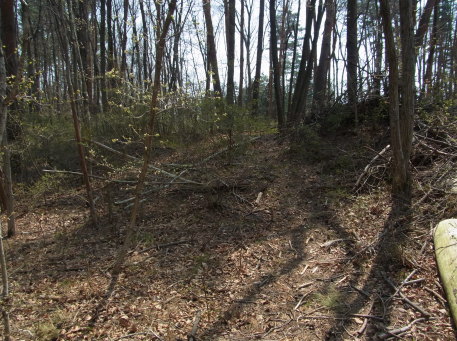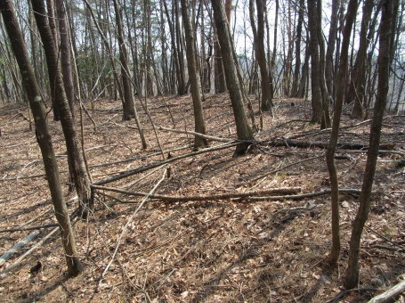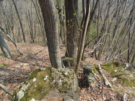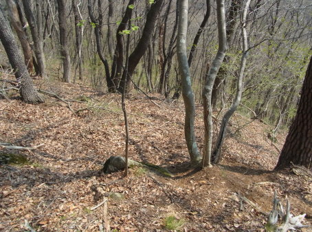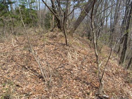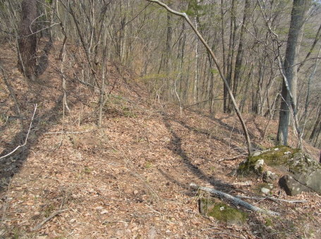 | 虎口跡へ直登する尾根。 旧登城路か。 |