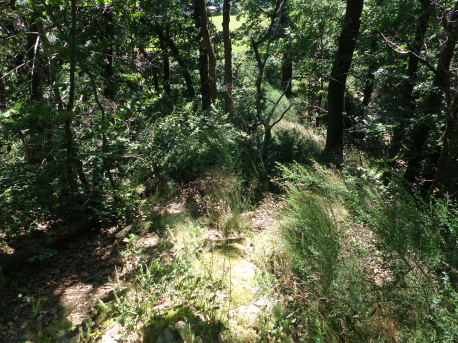 | 郭内のようす。 奥に土塁状地形が見えます。 |