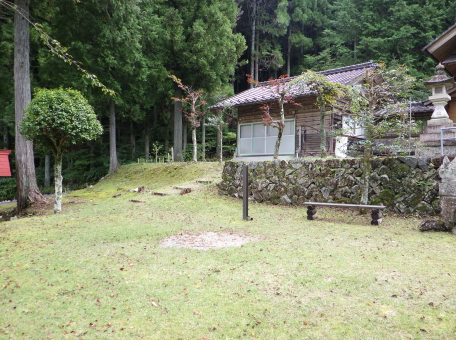 <沿革> 井戸周防守清満の居城とされるが、詳細は不明である。 <手記> 萩原町宮田字高屋の火神神社が井戸城跡とされているそうです。境内は西側を谷川が 流れる窪地にあり、領主の居館が置かれていた可能性はあるでしょう。境内の下方には 2段の細い田んぼがありますが、明瞭な遺構らしきものはみられませんでした。 田んぼの脇には井戸家の墓があったので、井戸氏ゆかりの地ではあるようです。 |