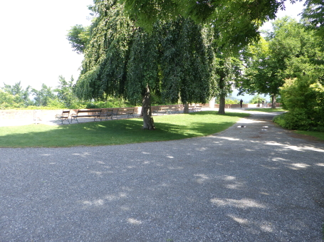 <沿革> グラーツの都市名はスラブ語(スロベニア語)で城砦を意味するグラデツ(Gradec)に由来すると され、スラブ人は6世紀ごろにシュタイアーマルクへ流入したといわれる。シュロスベルクに城館が いつごろ築かれたのかは明らかでなく、1140年にウダルリヒ・フォン・グラーツの名が現れるのが 史料上の初出とされる。13世紀前半には山麓の市街地が城壁で囲われ、同後半にはシュロス ベルクに聖トマス礼拝堂が建設された。 1379年、オーストリア公アルブレヒト3世とその弟レオポルト3世の間でノイベルク条約が結ばれ、 ハプスブルク家が2流に分裂すると、グラーツにはシュタイアーマルク公国を継承した後者の居城 が置かれた。レオポルト3世の孫のフリードリヒ5世は、御し易いという理由から神聖ローマ皇帝に 選出され、フリードリヒ3世を称した。フリードリヒ3世は凡庸であったが長命かつ悪運が強く、後に 婚姻政策で隆盛を極めるハプスブルク帝国の礎を築いたとされる。その治世下の1466~1486年 には、オスマン・トルコの脅威の高まりを受けてシュロスベルクの防備が強化され、麓の宮殿との 間は隠し通路で結ばれた。 第一次ウィーン包囲後の1532年、スレイマン1世率いるトルコ軍が再び襲来し、グラーツ郊外で 戦闘があったが、城と都市への攻撃は行われなかった。しかし、シュロスベルクとグラーツの城塞 は攻城技術の進歩に対応できなくなっていたため、1543年に開始された工事で近代的なものへ と一新された。主塔は取り壊されて稜堡が築かれ、また今日も残る深さ94mの井戸(トルコ井戸) が4年をかけて掘削されたとされる。1588年にはグラーツのシンボルとなっている時計塔が建造 され、全体の工事が完了するには、なおも1608年まで待たなければならなかった。 1809年5月、グラーツはナポレオン率いる軍に攻囲された。このとき、ヨハン大公率いる1万7千 の軍勢は態勢立て直しのためハンガリーへの撤退を決断しており、シュロスベルクにはフランツ・ クサーヴァー・ハッカーを守備隊長とするわずか900ほどの将兵が残された。フランス軍の司令官 グルーシーが降伏を勧告すると、ハッカーはグラーツの街の無血開城には応じたものの、シュロス ベルクの占領継続を主張し、グルーシーもこれを承諾した。 6月1日、街の占拠を完了したフランス軍は5千の兵をグラーツに残して東進を開始した。同13日、 グラーツ残留部隊はシュロスベルクへの砲撃を開始したが、山上の要塞にはほとんど打撃を与え られなかった。砲撃は同20日まで続いたが、南からオーストリアの援軍が近付いてきていたため、 フランス軍は翌21日に南進してこれに対応した。ハッカーはこの機にグラーツの街を奪還し、市民 の支援のもと食料と弾薬を補給した。 しかし、オーストリアの援軍を率いるギュライ伯はフランス軍を積極的に攻撃せず、日和見的な 態度を取り続けた。この間にフランス軍は1万を超える増援を受けてオーストリア軍に対して優位 となり、これを見たギュライ伯はグラーツを見捨てて撤退した。フランス軍は再びグラーツ攻略へと 舵を切り、同月27日にグラーツの街を再占領した。 ハッカーはその後もシュロスベルクを固守したが、7月に入ってオーストリアがヴァグラムの戦い に敗れ、同月12日に休戦協定が結ばれると、シュロスベルクの引き渡しも決定された。それでも なおハッカーは籠城を続けていたが、同22日にヨハン大公の書簡が届けられるに及んで、ついに 開城した。戦後、粘り強くシュロスベルクを守り抜いた功績により、ハッカーはマリア・テレジア軍事 勲章を与えられたうえ、フライヘル(男爵)に叙された。 逆に、要衝を攻めきれなかったナポレオンの怒りは凄まじく、10月に調印されたシェーンブルン 条約にはシュロスベルクの要塞の破壊が盛り込まれている。ここに、城砦としてのシュロスベルク の歴史は幕を閉じたが、グラーツ市民は大金を投じて時計塔と鐘楼を買い戻した。 <手記> グラーツはオーストリア南東部に位置する、同国第2の都市です。といっても人口は30万人弱だ そうで、大都市という感じはありません。盆地の中央をムール川が流れ、川沿いの独立丘である シュロスベルクには、日本にあったとしても間違いなく拠点城が築かれたことでしょう。 西麓からケーブルカーで上がれますが、比高120mほどなので歩いて登っても手頃なハイキング です。たいていの人の目的地は時計塔で、稜堡の上に建っている小さな尖塔は、実戦の歴史を もっているとは思えないほどメルヘンで象徴的です。有料で上がれるようですが、入らずとも塔の 周辺からグラーツ市街を見渡せます。 山頂方面へ進むと、雄々しい主郭稜堡の石塁の下に、上述の深さ94mのトルコ井戸があります。 ヨーロッパでは深さ100mを超えるような井戸も少なくなく、山上で水を得るのが日本よりも相当に 困難だったのでしょう。井戸の脇には堀切があり、かつては渡櫓が上がっていたようです。その 先は出丸で、今は四