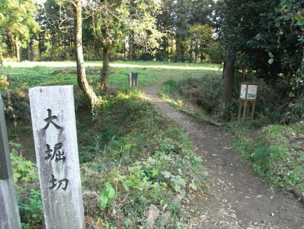 | 二の丸南の大堀切と土橋。 その向こうが郭馬出。 |