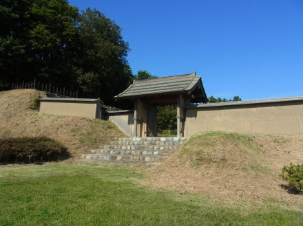 | 伝秩父曲輪の復興四脚門・石段と塀。 | |