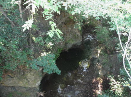 | (おくり)泉水跡。 中央左手の小丘は弁天社跡。 |