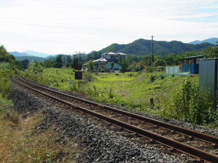| 線路の向こうに大光寺曲輪の堀と土塁を望む。 | |