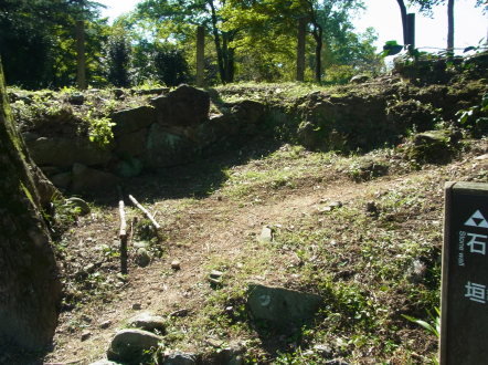 | 本曲輪先端下の笹曲輪の石垣跡。 | |