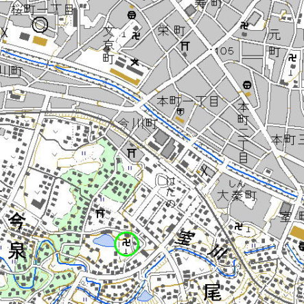 <沿革> 大岳院と大岳院池の間にはかつて土塁があったとされ、また大岳院周辺には堀ノ内の小字が 残っている。また、大岳院北西の八坂神社周辺には天王開戸という字名もある。開戸とは「垣内」 すなわち城内にあたることを意味する地名と推測される。 『新編相模国風土記稿』には「梅沢の追分より二里余にして旧塁あり、一色伊予守の城跡なり といへり」とある。永享の乱で自害した鎌倉公方足利持氏の奉行人であった一色伊予守六郎は、 永享十二年(1440)に「今泉館」に立て籠もり抵抗を続けた。関東管領両上杉氏は、家臣長尾 憲景・太田資光を派遣し、今泉館を攻めさせた。伊予守は敗れて下野へ逃れ、後の結城合戦へ とつながったとされる。この今泉館については、ここと海老名市の2つの比定地がある。ただし、 『記稿』の示す場所は、大岳院より南に位置している。 永禄二年(1559)成立の『小田原衆所領役帳』によれば、桑原彌七郎なる人物が中郡波多野 今泉に75貫文を領していたとある。あるいはこちらとの関連も考えられるが、詳細は不明である。 <手記> 今泉城址とされる大岳院は秦野駅の南西すぐのところにあります。寺の東側や南側は駅前の 区画整理によって新興住宅地として整備されつつあります。それにつられてか、大岳院の本堂も とても寺とは思えない首相官邸のようなモダンな建物になっています(笑)。寺の西の大岳院池 は、以前は養魚場だったようですが、現在では桜の美しい自然公園となっています。 寺の改修や池周辺の公園化により、遺構は消滅してしまったたようです。『日本城郭大系』に よれば、寺の池端に土塁跡が残っていたそうですが、現在では美しい桜並木に変わっています。 周辺を探索してみましたが、他に遺構らしきものは見当たりません。 大岳院池は人造湖で、古くは湿原状の谷戸だったそうです。ここに限らず、秦野は有数の湧水 地帯として知られ、往時は大岳院のある丘陵先端を取り囲むように湿地帯が広がっていたとみら れています。すなわち、今泉城はこれらの湧水群や、南を流れる室川流域を押さえるための城で あったと推測されます。丘陵先端といっても、周囲との比高差はほとんどなく、防衛能力に関して は疑問です。よって、一色伊予が立て籠もった今泉館については、崖端の城である海老名市の 今泉館の方が妥当ではないかと思われます。 秦野市は本当に水の豊かなところですので、訪れる際にはポリタンク、最低でも空ペットボトル を用意しましょう。 |