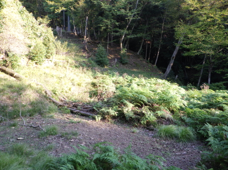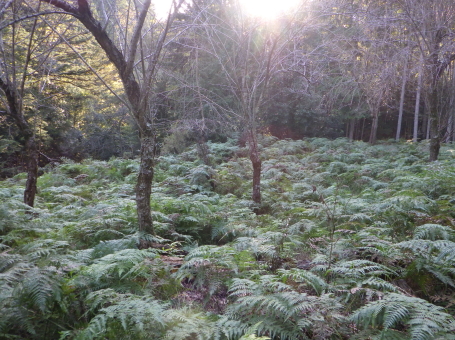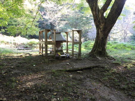 <沿革> 波木井南部氏初代・波木井(南部)実長の居館とされる。実長は甲斐源氏・加賀美遠光の三男・ 南部光行の三男で、13世紀前半に波木井郷地頭を父から譲られ波木井氏を称した。文永十一年 (1274)には、流罪を解かれた日蓮を迎え入れ、身延山に草庵を結んで庇護している。 永仁五年(1297)に実長が没すると、波木井氏の家督は四男・長義が継いだとされるが、梅平の 屋敷のその後については不明である。長義の子孫の義実は、大永元年(1521)に今川氏へ通じた として武田信虎に「波木井の峯の城」を攻められ、誅殺された。 <手記> 身延山久遠寺総門の南東向かいにせり出した山裾の舌状部が、波木井氏館跡とされています。 麓の墓地から山道が付いていて、電線鉄塔まで行かない手前に平坦地が広がり、一画に小社が 祀られています。南西側は沢谷戸となっていて、その脇には一段低い窪地が見られますが、とくに 防御設備のようなものは見当たりません。発掘調査からは、掘立柱建物跡や12世紀末ごろの土器 が出土しているそうです。 正面に身延山を仰ぎ見る絶好の眺望ポイントであるという点が、一番の特徴といえます。然るに、 日蓮が起居し、その没後は遺骨が納められた身延山を日夜拝むことのできるこの地は、日蓮に深く 帰依した実長にとって重要だったのではないかと推察されます。とすれば、この館は領主の行政府 というより日蓮宗の寺務所のような役割を担っていたと考えられ、防御施設も豪華な建物も不要で あったのではないでしょうか。個人的には、領主としての波木井氏の居館は波木井の集落に臨む、 実長開基と伝わる円実寺付近にあったのではないかと推測しています。 また、波木井氏館跡の北東にある鏡円坊は、実長次男の屋敷跡とされています。該当する人物 として六郎次郎実氏があり、実氏は常陸国に所領を得て加倉井氏の祖となりました。波木井氏の 家督は実長四男の長義が継いだとされ、長義もまた日蓮に帰依して出家していることから、長義の 代までは梅平の屋敷が使用されていたとも考えられます。 ところで、波木井氏館の現地周辺には城館跡を示すような案内や標識はなく、鏡円坊の門脇に 説明板が建てられています。ちなみに鏡円坊の本堂を参拝すると、私だけでなく誰しも驚きを隠せ ないのではないかと思います。何についてかをここに書くのは、その御心に背くような気がします ので、ぜひ皆さんの目で確かめてみてください^^ |