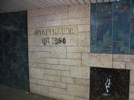 | 旧市街東辺堀跡を横断する地下道の城壁跡を示す表示。 | |