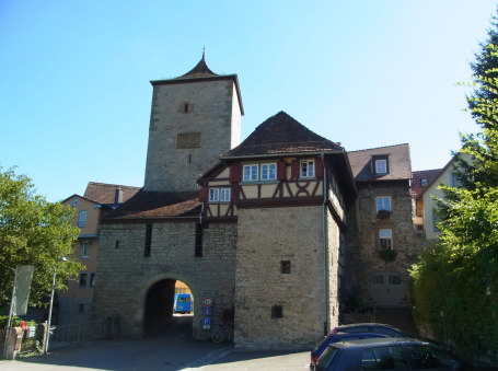 <沿革> シュヴェービッシュ・ハルとは、シュヴァーベンのハルという意味である(以下、しばしば 短縮して「ハル」と呼称)。ハルはドイツ地域のなかでももっとも古い町の1つで、当初は 製塩の町として発展した。「ハル」とは、この地に紀元前5世紀頃から住んでいたケルト人 の「塩」を意味するケルト語に由来するといわれている。ハルでの製塩法は塩水を汲み 上げて煮詰めるものだったらしく、その様子を表す西ゲルマン語が「ハル」の語源であると する説もある。 ハルの名が初めて史料に登場するのは1037年の『エーリンゲン寄付行為書』とされる。 だが、同書は実際は11世紀末ごろに作成されたものであるともいわれる。ハルははじめ コームブルク=ローテンブルク家の支配下に置かれていたが、1116年に同家が断絶する と、統治権はシュタウフェン家に譲られた。 1250年に、城壁と7つの塔が構築されたと伝えられる(塔の建築は1240年とも)。ケック 城(ないしケック氏塔:Keckenturm)は、この7つの塔のうちの1つである。ケック氏はハル の有力者であるが、その出自は不明である。『ホーエンローエの諸城(原題:"Burgen in Hohenlohe")』によれば、15世紀前半ごろの当主ハインリヒ・ケックは町一番の預金額を 誇っていた。ハインリヒは、1400年頃に7つの塔のうち1つを購入し、住居として改装した。 木組みの上層部は、1507~08年にかけて増築されたものである。 このころのハルは製塩だけでなく、神聖ローマ帝国の自由都市としての活動やハラー 硬貨と呼ばれる貨幣の鋳造で栄えていた。都市が発展するとともにハルは市域を拡大し、 城壁などの防備も拡充していった。1525年のドイツ農民戦争や、1618年に始まる三十年 戦争でも陥落することはなかった。 1728年、ハルの町は大火に見舞われ、市街の3分の2ほどを焼失した。ケック城は被災 を免れたが、1740年に市街の復興様式に合わせて塔もバロック調に改築された。1802年、 ヴュルテンベルク公フリードリヒ3世は、ライン左岸をフランスに割譲する代わりに、ハルを 含む9つの帝国自由都市を併合した。その後、近代化の波とともにハルの城壁や堀は一部 を除いて取り崩されていったものと推測される。 ケック氏塔がいつごろまでケック氏の所有であったかは詳らかでないが、1936年からは 市の歴史的収集物の収蔵庫として活用された。現在は、ハル=フランケン博物館の一部 となっている。 <手記> シュヴェービッシュ・ハルは、ネッカー川の支流コッヒャー川の谷間の都市です。完全に 山間の町で、平地はほとんどなく、谷の斜面に中近世そのままのような家々が立ち並んで います。日本でいえば「小京都」といったところでしょうか。普通に考えれば都市など発展 できる地形にはないのですが、塩水を産出するというところから帝国自由都市にまで成長 した特異な町といえます。 「シュヴェービッシュ・ハル」という都市名は、ナチ時代に確定されて今日まで正式名称 として使われていますが、ハルの人々の帰属意識はシュヴァーベンよりもホーエンローエ 地方にあるようです。ハルの人口は4万人弱ほどしかありませんが、ドイツ国民銀行住宅 金融公庫株式会社の本社があるなど、ドイツ国内屈指の財政的に裕福な都市として知ら れています。ドイツ全体の失業率が10%を超えるなかでも、ハルの失業率は3%程度にとど まっていたことが、ハルっ子の自慢です。 他方で観光地としても栄えていて、前述のとおり中近世さながらの街並みが魅力です。 城塞都市としての遺構は旧市街の南側に多く残っています。とくに南辺の堀跡は、当時 のままほとんど手つかずの状態で保存されています。他の外周の堀跡も町の環状道路と なって、その所在を今に伝えています。東辺の堀跡の下をくぐる地下歩道には、1250年に 築かれた城壁跡を示す壁面表示が設けられています。 城壁に付随する塔の1つであったとされるケック氏塔は南辺の堀端にあります。5階建て のこの塔は、現在では周囲の建物とどっこいどっこいの高さとなっていて、かなり早いうち に防御塔としての役割を終えていたものと推測されます。内部はハル=フランケン博物館 となっていて、この地方の歴史的な資料が展示されています。上の写真は旧市街南側の 建物群をコッヒャー川の中洲から撮ったものですが、窓から垂れ幕の下がっている高い 建物がケック氏塔です。一番後背の巨大建造物は、1526年に建てられた武器庫です。 ハルの旧市街中心部はコッヒャー川東岸にありますが、西岸にも町は広がっていました。 西岸地区北端のヴェラー門は、現在残っているもっとも大きな城門です。1200年に築かれ、 増改築を繰り返して今の姿になったそうです。1526年に増築された城門上階の櫓部分は 賃貸アパートに改装されていて、鋭意契約募集中のようでした。一城の主…とまでは言い ませんが、中世の武将の気分を味わいたい方はひと夏の別荘にでもいかがでしょう^^。 |