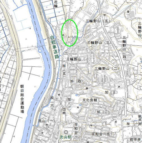 <沿革> 小金城主高城氏重臣田島時定の妹婿の平本主膳定虎が城主であったと伝わる。また、 高城胤吉の家臣花輪淡路守が築いたとする伝承もあり、築城の経緯は定かでない。 定虎の後裔と推測される主膳定勝は、小田原の役による主家没落後の慶長年間(1596 〜1615)に、江戸川対岸の三輪之江村の新田開発に尽力し、定勝寺を開基した。同寺の 寺伝によれば、定勝の父は定久とされる。定虎を定久の父とすれば、年代的には辻褄が 合うが、詳細は不明である。 <手記> 花輪城は、江戸川に沿って北から細長く伸びた台地の先端に位置しています。伝承では 花輪淡路守の名が挙がっていますが、当時の文献からは花輪の地名は確認できないそう です。したがって、伝承上の花輪氏が実在したかは微妙なところです。ただ、定虎が時定 の義弟とすれば、胤吉の家臣とされる淡路守とは一代分くらいの年代差があると思われ、 定虎が花輪氏を駆逐したか跡を継いだ可能性もないとはいえません。 現在、台地の先端部分が城址公園となっています。県道沿いの立派な石碑に比べて、 内部はこじんまりとした空間になっています。かつてここには、琵琶首観音堂というお堂が ありましたが、老朽化によって近年解体されたそうです。お堂跡のすぐ裏手に、堀・土塁と 土橋がセットで残っています。峰先側には、一段高くなった四阿があり、園内の説明板の 地形図には櫓台ないし土塁のように書き込まれているため、これも遺構であると思われ ます。 このように、観音堂跡周辺だけでも城としての体裁は一応整っているように見えますが、 この部分だけではあまりに狭く、とても籠城の用には耐えられません。おそらくより付け根 側に、もう1郭ないし2郭続いていたものと思われますが、今では墓地や浄水施設などと して開発されており、確認は困難です。 直感的には、同じ流山市内の前ヶ崎城に地形が似ており、高城氏の支城として小田原 の役まで使用されていたものと考えられます。 |