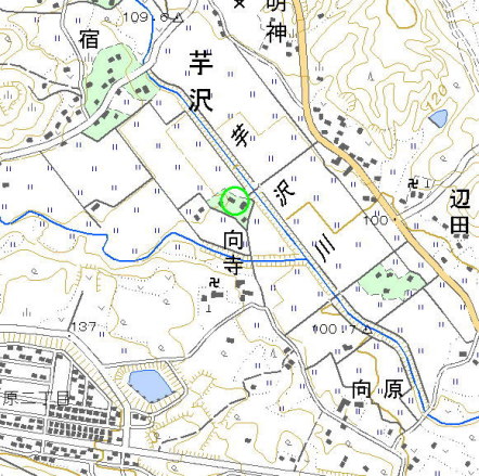 <沿革> 『宮城郡誌』にある芋沢七館の1つと思われる。詳細は不明。 <手記> 原館は、芋沢川と蒲沢川の合流点に位置する平地の館です。この付近の川は、 圃場整備によって流路を直線に変えられていますが、原館周辺は辛うじて原型を とどめています。 とくに館跡を示すものはありませんが、よくよく見ると水濠の跡と思しき溝が集落 を囲っているのがわかります。 |