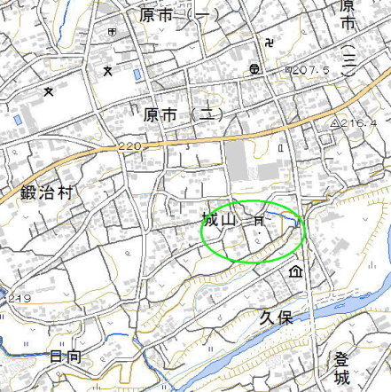 <沿革> 『日本城郭大系』では、築城者は「安中氏でなければならない」としているが、史料 にはみられないため、詳細は不明である。 <手記> 簗瀬城は、碓氷川とその支脈が形成する小規模な舌状地形を利用して築かれて います。史料には現れないため、簗瀬城ないし原市城というのは地名から付けられ たものと思われます(稲荷城というのは、本丸に鎮座する稲荷神社にちなむもので しょうから、当時の呼び名としてはあり得たとは思えません)。 神社の四周に、本丸の土塁と堀跡が良好に残っています。これだけ綺麗に残って いるのに、伝承すらないというのが不思議なくらいです。『大系』所収の縄張り図に よれば、本丸の西にも南北に惣堀状の空堀が南北に走っていたということですが、 これも宅地のなかに一段低い畑地として痕跡をとどめています。 この城については、『大系』が断定的に推測しているように、碓氷川の渡河点を 押さえる目的で、安中氏によって築かれたものとみるのが自然でしょう。ただ、個人 的には、ひとつ西側にある八幡平陣城との関連を考えています。 永禄四年(1561)に武田信玄が安中領へ侵攻した際、安中城と松井田城の分断 を図って、八幡平陣城が築かれたとされています。この陣城の位置については今も 不明ですが、「首塚」が発見されたことから、簗瀬城の西に存在した方形の崖端城 がそれに比定されています。 しかし、既に簗瀬城が安中氏によって築かれていたとすれば、わざわざその眼前 に立派な陣城を新築するより、簗瀬城を奪って使用した方が早いはずです。そこで、 改めて簗瀬城の縄張り図を見てみると、本丸の西の空堀は、どうも後になって増築 されたもののように見えてなりません。すなわち、もともと簗瀬城は、現在の本丸を 西端とし、東の舌状先端に向かって段築状に曲輪を設けたもので、信玄がこれを 接収して西側に増築し、陣城としたのではないかと推測しています。 さらにいえば、陣城に比定されている簗瀬城の西の崖端城も、東側に増築されて いるような感を受けます。したがって、八幡平陣城とはこれら2つ(あるいは3つ)以上 から成る複合的な砦群だったのではないかと、私見ながら考察しています。 |
