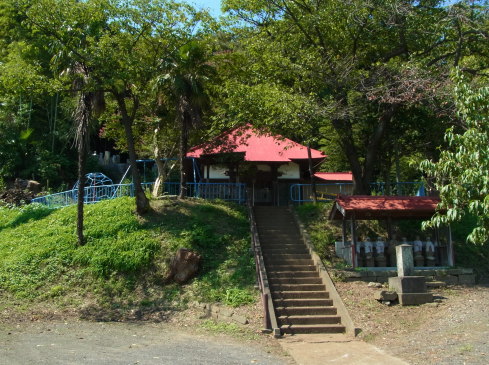 <沿革> 『新編武蔵国風土記稿』に「極楽寺持の観音堂は陣屋敷にあり」とあり、『日本城郭大系』 によれば、観音堂は現在の世尊院にあたるとされる。陣屋の主の名については、『記稿』に おいても記載されていない。 永禄二年(1559)に編纂された『小田原衆所領役帳』によれば、笠原藤左衛門および小野 與三郎が八朔に所領を得ていた(後者については代官とある)。また、北八朔村鎮守の十二 神社は、慶安二年(1649)に領主久世大和守によって造営されたとされる。年代の合う大和 守として、老中も務めた久世広之がいる。広之は、同元年(1648)に5千石の加増を受けて 1万石の大名となっている。また、久良岐郡本牧にも加増を得ており、本牧の十二天を勧請 したという十二神社の縁起と合致する(ただし、広之の本牧加増は寛文二年(1662)のことと される。 八朔陣屋はこれら3者のうちいずれかによって築かれたものと推測されるが、詳細は不明 である。 <手記> 旧北八朔村の北端付近に位置する世尊院境内が、陣屋跡といわれています。八朔地域の 大部分を占める丘陵の尾根先に築かれていますが、ほぼ山麓なので要害性はほとんど認め られません。 境内の周囲は人工の切岸になっており、陣屋があったとすれば、土塁とみるべきと思われ ます。その他に、陣屋と結び付けられそうなものはとくにありません。境内自体は、狭いとも 広いともいえない微妙な規模です。居館とするには少々違和感を覚える広さと形状なので、 飛び地の代官所というのが一番しっくりくるように感じます。したがって、前出の3人のうち、 八朔の他に本領のある笠原氏か久世氏が築いたものと推測されます。 |