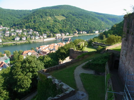 <沿革> ハイデルベルクの町の名が史料に現れるのは12世紀のことであるが、城がいつ築かれた のかについては詳らかでない。1225年に「ハイデルベルクの城(Castrum in Heidelberg)」が ヴォルムス司教ハインリヒ2世からライン宮中伯ルートヴィヒ1世に譲渡されたとするのが、 城に関する初出である。 1294年までの記録には、ハイデルベルクの城には単数形が用いられていたが、1303年の 記録には2つの城の存在が記されている。かつては、現在のハイデルベルク城に相当する 「下の城」が1294〜1303年に築かれたもので、1225年に存在していたのはモルケンクーア 周辺にあった「上の城」であると考えられていた。しかし、近年の考古学や建築学に基づく 調査・研究により、「下の城」の築城年代が13世紀前半ごろであると推定されている。 以後、ハイデルベルク城はライン宮中伯(1356年以降はプファルツ選帝侯)の居城となった。 1386年には、プファルツ選帝侯ルプレヒト1世によって神聖ローマ帝国内で4番目となる大学 が創立された。1401年、ルプレヒト1世の又甥ルプレヒト3世は、帝位に選出されてドイツ王 ルプレヒトとなった(戴冠は果たせなかったため皇帝ではない)。ハイデルベルク城は侯の城 から王の城となり、その格式にふさわしい宮城として改築された。ルプレヒトの死後、帝位は ルクセンブルク家のハンガリー王ジギスムントが継ぎ、プファルツ選帝侯はルプレヒトの次男 ルートヴィヒ3世が継承した。1415年、ルートヴィヒ3世はジギスムントの命を受けて対立教皇 ヨハネス23世をハイデルベルク城に幽閉した。翌1416年、ヨハネス23世はマンハイム郊外の アイヒェルスハイム城に移送された。 1462年のバーデン=プファルツ戦争で、プファルツ選帝侯フリードリヒ1世はバーデン辺境 伯カール1世やその弟のメッツ司教ゲオルク、そしてヴュルテンベルク伯ウルリヒ5世を捕虜 にしてハイデルベルク城に幽閉した。彼らは多額の身代金や抵当領と引き換えに解放され たが、この間満足な食事も与えられず、厳しい監視下に置かれていたとされる。とくに食事 にパンが供されなかったことについて、フリードリヒ1世は食事に際して城の窓から荒廃した 領土を3人に見せて、納得させようとしたと伝わる。19世紀の作家グスタフ・シュヴァープは、 この伝承をもとに詩『ハイデルベルクの食事』を著した。 フリードリヒ1世の又甥ルートヴィヒ5世の代の1518年、カトリックの総会がハイデルベルク で開かれ、問答のためにこの会に呼ばれたルターが自説を熱く論じたとされる。このとき、 選帝侯の計らいでルターは城内を案内され、友人に宛てた手紙で城の美しさと防衛設備の 充実ぶりを語っている。ルートヴィヒ5世の弟フリードリヒ2世はルターのアウグスブルク信仰 告白を受け入れ、ハイデルベルクは宗教改革の一大拠点となった。 1608年、ときの選帝侯フリードリヒ4世はプロテスタント同盟を結成し、その盟主となった。 1619年のプラハでの第二次窓外投擲事件を機に宗派間対立が先鋭化すると、ボヘミアの プロテスタント貴族はフリードリヒ4世の子フリードリヒ5世をボヘミア王フリードリヒ1世として 迎えた。しかし、プロテスタント側の連携不足の隙を突かれ、翌1620年の白山の戦いで、 ボヘミア軍はティリー伯ヨハン・セルクラエスらの率いるカトリック同盟・神聖ローマ帝国連合 軍に完敗した。失意のフリードリヒ5世を待っていたのは、スペイン軍やカトリック同盟軍に よるプファルツ侵攻であった。1622年、セルクラエスやバイエルン公マクシミリアン1世らの カトリック軍によってハイデルベルク城は攻囲され、1か月弱の砲撃戦の後に陥落した。 フリードリヒ5世はオランダへ逃れ、プファルツ選帝侯位と領地はバイエルン公マクシミリアン 1世に与えられた。 1633年には、三十年戦争に参戦したスウェーデン軍がハイデルベルク城に攻め寄せ、 城の裏手のケーニヒスシュトゥールの山上から砲撃を加えて降伏させた。翌1634年には 帝国軍が奪還を図り、その翌年に城は占領された。 1648年のヴェストファーレン条約(ウェストファリア条約)によって、ルートヴィヒ5世の次男 カール1世ルートヴィヒがプファルツ選帝侯に返り咲いた。しかし、父がマクシミリアン1世に 奪われた選帝侯位はバイエルン選帝侯として認定され、カール1世のプファルツ選帝侯位 は新たに設けられたものである。カール1世は翌1649年にハイデルベルク城に入り、荒廃 した領内の復興に尽力した。 1685年にカール1世の子カール2世が嗣子なく世を去ると、遠縁にあたるプファルツ= ノイブルク公フィリップ・ヴィルヘルムが選帝侯を継いだ。しかし、これに対してフランス王 ルイ14世は弟のオルレアン公フィリップ1世の妻でカール2世の妹にあたるエリーザベト・ シャルロッテの相続権を主張した。1688年に、ルイ14世は軍をプファルツ領へ侵攻させて プファルツ継承戦争が勃発した。フランス軍は破竹の勢いでラインラントを蹂躙し、フィリップ・ ヴィル