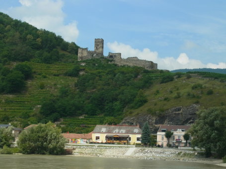 <沿革> 1243年の記録にヘルマン・フォン・ニーダーアルタイクの城砦(Castrum)として登場する のが初出とされる。同年、周辺の所領はバイエルン公に譲渡され、さらにキューンリンク家 に譲られた。 1355年にはフォン・ヴァルゼー家に、1385年にはマイッサウ家の手に渡った。1409年に、 城はオーストリア公の意向で一度破壊されたが、1438年にバイエルン公エルンストが当時 の所有者であったオットー5世・フォン・マイッサウから城を貰い受け、まもなく修築された。 1440年、ヒンターハウス城はナイデック家に譲られた。1463年には、パンクラーツ・フォン・ プランケンシュタインの軍勢に包囲されたが、耐え凌いでいる。だが、1493にはハンガリー 軍によって占領された。 1500年ごろからは無人の城となり、崩壊が進んだといわれる。1507年には、アイテル・ フリードリヒ2世・フォン・ツォレルンの所有となった。1529年の第一次ウィーン包囲によって オスマン帝国の脅威が身近なものとなると、ヒンターハウス城も改修が加えられた。 三十年戦争さなかの1620年には、ブッコワ伯シャルル=ボナバンチュール・ド・ロンギュ ヴァル軍によって破壊された。その後は、ほとんど修築はなされなかった。ナポレオン戦争 中の1805年と1809年にも、すでに廃城同然であった城は相次いでダメージを受けた。 <手記> ヴァッハウ渓谷の中心的なワイン集積地の町シュピッツを、西端から見下ろす尾根筋に 築かれた城です。ヴァッハウのなかでも、デュルンシュタイン城と並んで古城らしい面影を 残しています。 「ヒンターハウス」とは、英語にするなら「back house」となり、かつては「後屋敷」と対に なる「下屋敷(Niederhaus)」があったようです(今もあるのかよく分かりませんが)。城は、 シュピッツの観光HPによれば、真ん中の主郭と前後の副郭の3つの部分から成っている そうです。 ところで、シュピッツの町はヴァッハウ渓谷クルーズの立ち寄りスポットとして有名なよう です。とくに中国のガイドブックに載っているのか、たくさん乗船していた中国人観光客が 1人残らずシュピッツで途中下船していきました。 |