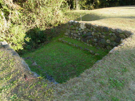 | 復興本丸堀向かいにある函型凹部。復興竪堀跡か。 | |