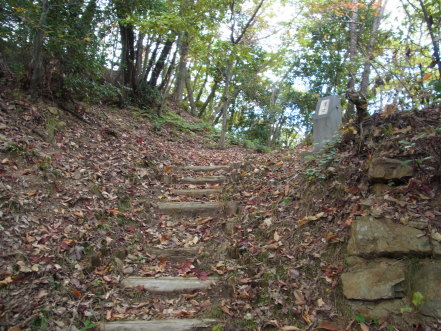 | 同虎口を北尾根側から。 両サイドと奥の石柱裏の曲輪から攻撃を受ける構造です。 |