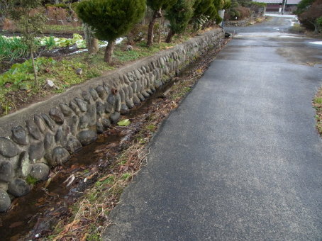 | 興禅院門前の水路と段差。 | |