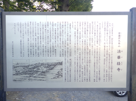 <沿革> 八幡荘の代官であった千葉氏被官の太田乗明は、近隣の若宮館主富木常忍や千葉氏庶流 の曽谷教信と共に日蓮に帰依し、その活動を大きく支えた。乗明と常忍は自らの館に持仏堂を 建立し、それぞれ本妙寺と法華寺になった。 常忍は日常と号して法華寺の貫主となり、弘安五年(1282)に日蓮が入寂すると、乗明の子・ 日高が本妙寺に入った。永仁七年(1299)に日常が没すると、日高が法華寺も継承し、以降は 両寺の住持を同一人物が務めるならわしとなった。 天文十四年(1545)、両寺は法華経寺として統合され、今日に至っている。 <手記> 法華経寺の境内が太田氏の館跡とされ、今も日蓮宗中山門流の大本山として重要文化財の 祖師堂や五重塔をはじめ、荘厳な堂宇が立ち並んでいます。土塁が残る若宮館に対し、こちら は鎌倉武士の館跡など影も形もみられません。京成中山駅から長々と参道が続き、広々とした 境内に圧倒されます。 それにしても恐るべしは日蓮という人で、若宮館の他にも池上氏館や本間氏館など、多くの 武士が日蓮に帰依して館跡を寺院として差し出しています。自分を泊めた武士に居館の敷地を 寄進させる能力をもつスタンド使いだったのではないかというくらい、日蓮のカリスマ性は異常 といわざるを得ないでしょう。 |