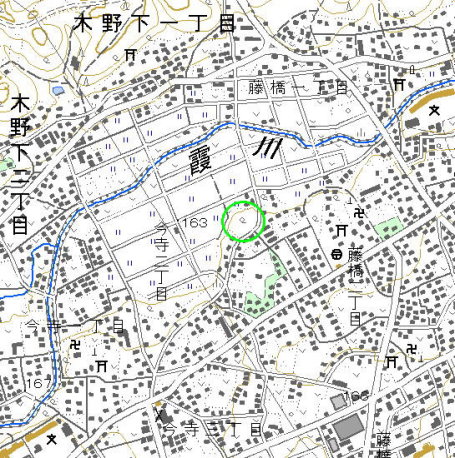 <沿革> 藤橋城築城の経緯については明らかでない。『武蔵名勝図会』には「平山越前守重吉(現地の 説明板では虎吉)という人の住居の地なり」とある。平山氏は、武蔵七党の1つ西党に属する平山 季重の子孫とされる。ただし、檜原城の平山氏が本流とされ、藤橋城平山氏はその傍流とされる。 いつごろ分かれたのかは定かでない。 永禄三年(1560)に越後の長尾景虎が関東管領上杉憲政を擁して関東に出陣した際、藤橋城 の平山光義が長尾陣営に馳せ参じたことが、『関東幕注文』からうかがえる。重吉が天文十二年 (1543)没とされるため、光義は重吉の子かそれに準ずる者と考えられる。光義は檜原城主平山 氏重の妹鶴寿を妻としていたが、氏重は北条陣営にとどまったため、鶴寿は檜原へ送り返された。 翌年四年(1561)、北条氏攻略に失敗した上杉政虎(長尾景虎から改名)が越後へ帰国すると、 藤橋城は北条氏の攻勢に晒された。永禄六年(1563)に城は落ち、光義は捕えられて小田原へ 送られた。その後に光義は解放され、鶴寿とともに下総国多古へ落ち延びたといわれる。 その後の藤橋城については明らかでない。廃城となったとも考えられるが、平山氏一族とされる 藤橋小三郎なる人物も藤橋城主として見られることから、小三郎が光義の跡を襲って藤橋城主と なったとも推測される。 <手記> 藤橋城は、北に霞川の氾濫原を望み、河岸が一部せり出したところにあります。北麓は今でも 水田地帯ですが、当時もおそらく深田が巡っていたと思われます。また、城の南側を東西に豊岡 街道が、東側を南北に岩蔵街道が走り、両者は城の東で交差しています。交差点付近には七日 市場や今井馬場崎といった地名が残り、古来交通の要衝であったことがうかがえます。 城跡は、主郭が公園化されているほかは住宅地となっています。なので詳しい縄張りは分かり ませんが、基本的には主郭のみの単郭を基調とした城であったと思われます。主郭の遺構残存 状況は良好で、曲輪をぐるりとめぐる土塁と北東部の空堀が残っています。また、主郭の一段下 に空堀ないし帯曲輪と思しき削平地も見受けられます。 公園をぐるっと迂回する道路は、主郭と外郭の間の空堀跡と思われます。その外側の住宅地 には外郭があったと推測されますが、詳細は不明です。 藤橋城は、東に1qの今井城や西に2qの勝沼城と比べて構造が原始的であるという特徴が あります。これはおそらく、今井城や勝沼城が後北条氏の改修を受けているのに対し、藤橋城は 在地領主の館城のままであったことを示していると思われます。 |