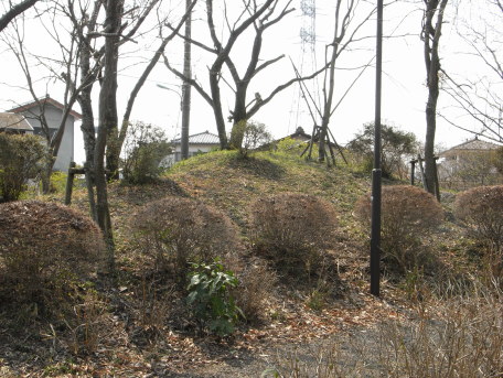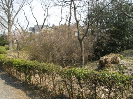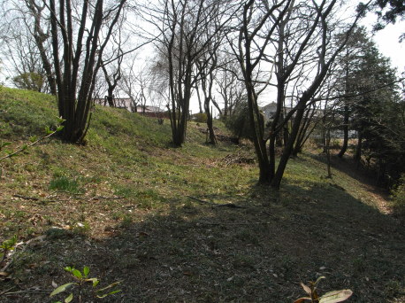 | 主郭西側の土塁と帯曲輪跡。 | |