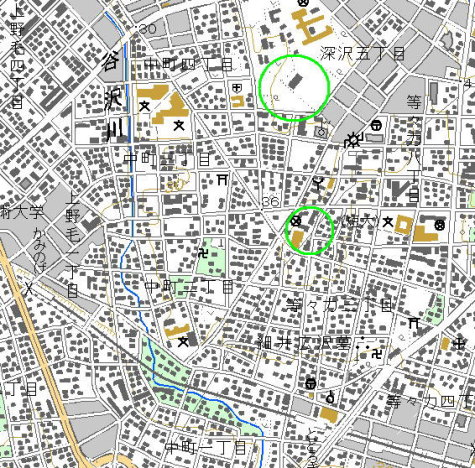 <沿革> 永禄七年(1564)、南条右京亮重長が第二次国府台合戦の戦功により、北条氏康から深沢郷に 所領を与えられた。南条氏は、伊豆衆の1人とされる。重長は、領地の東端に居城を、兎々呂城 (とどろき)に出丸を築いたとされる。 北条氏が滅ぶと、重長は城を廃してこの地に土着したとされる。子孫は谷岡氏を称し、深沢村の 名主となったといわれる。 <手記> 深沢城の位置については、現在の都立園芸高校付近あるいは玉川警察署付近の何れかとされ、 諸説あって定まっていません。玉川警察署付近とすれば、台地の先端を利用した城であり、園芸 高校付近とすれば、崖端の城ということになります。また、深沢城という呼称自体、当時使われて いたかどうか詳らかではありません。 村の東端に築かれた、つまり東方の眺望が重要であるという点を鑑みれば、玉川警察署付近の 方が東西南への眺望が開けていて、城地として相応しいといえるかもしれません。ただし、発掘等 の調査が行われない限りは、はっきりとしてことはいえないでしょう。あるいは、周辺に出丸や支塁 が設けられていたとされることから、2つの比定地の両方ともに城館施設があったとも推測されます。 |