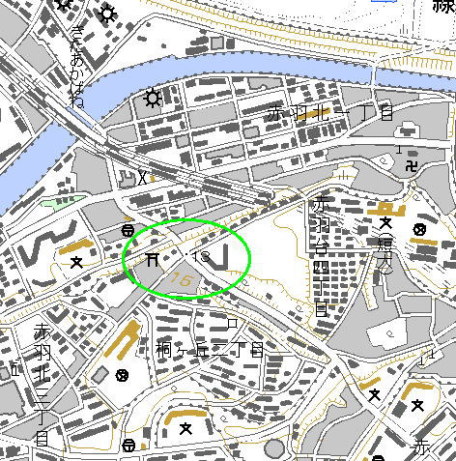 <沿革> 現在の袋小学校の東、諏訪神社から東京北社会保険病院のあたりにかけてを殿山といったという。 しかし、この地に城館があったという確証はない。 <手記> 袋の殿山は、JR埼京線北赤羽駅南方の河岸段丘にあります。北麓には新河岸川と荒川が控えて います。『日本城郭大系』によれば、神社と病院の間の坂道を堀切とみれば2つの曲輪からなる城と 考えられるとあります。この諏訪神社前の坂道は「宮の坂」という切通し道で、赤羽に抜けています。 しかし、この切通し道が堀切だったとして、この両側を曲輪とする城の存在を想像するのはいささか 困難です。殿山とはいうものの、地形的には河岸段丘の中途であり、とくにピークがあるわけでも、 舌状になっているわけでもありません。 城館の存在につながる手がかりとなるかは分かりませんが、この宮の坂は赤羽につながっており、 赤羽には太田氏の重要拠点である稲付城があります。当時も同様の道が走っていたとすると、袋の 殿山は荒川を越えて稲付へ向かう街道を押さえる場所にあるといえます。したがって、城館というより 関所に近いような施設があった可能性は指摘できると思われます。 |