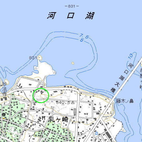 <沿革> 小林氏の館と伝えられる。小林氏は上野原加藤氏の一族とされるが、詳しい系譜は 不明である。『妙法寺記』の文亀四年(1504)の項に「船津つゝの口を小林尾張入道殿 本主のふさぎ玉ふ所を取のけ玉へは花立のかけなとを掘出し玉ふ」とあり、小林尾張 入道道光が船津で何らかの土木工事(河口湖の湖岸改修か)を行ったことがうかがえ、 これ以前にはすでに船津に館が構えられていたものと推測される。 大永元年(1521)、武田信虎が「大原(荘)船津」に「小林宮内丞殿(道光かその子の 昌喜)」を訪ねている。翌日、信虎は小山田氏の居館中津森館へ向かった。 また『妙法寺記』には、天文五年(1536)の項に「小林刑部左衛門殿松原さきを屋鋪 に御立候」とあり、同八年(1539)には「小林刑部左衛門殿松山を御立て候」とある。 どちらも松山館を指すものと考えられているが、どちらかの年に居館が松山館へ移され たものとみられる。小林刑部左衛門房実は道光の孫または曾孫にあたる。 その後の船津館については不明である。小林氏は天正十年(1582)に武田氏および 小山田氏が滅んだときに、運命をともにしたとされる。 <手記> 船津館は、八木崎公園入口の交差点南東一帯の字御屋敷にあったとされています。 八木崎の両側は穏やかな入り江となっていて、対岸の河口から船に乗れば最短距離 で河口湖を横断できる位置にあります。おそらく、この湖道ルートを押さえることに主眼 を置いた館だったのではないかと推測されます。 周辺にはとくに館跡を示すものはなく、正確な位置は不明です。交差点南東に上面が 削平された小高い丘があります。そして、この丘の南を除く三方は、丘を取り巻くように 堀状の低い畑地が巡っています。これらが館の遺構のようにも見えるのですが、たしか なことはいえません。 |