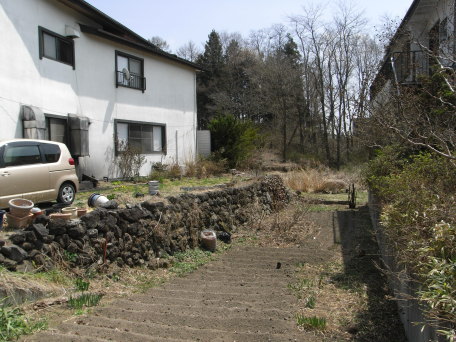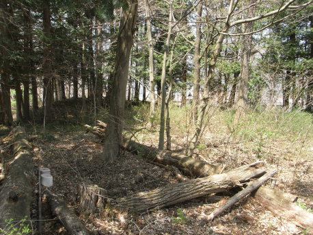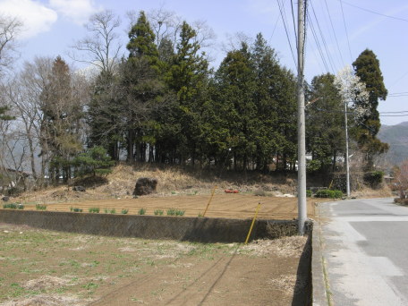 | 比定地にある丘。手前の畑は堀状に低まっています。 遺構の一部か。 |