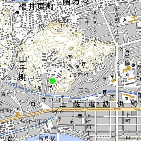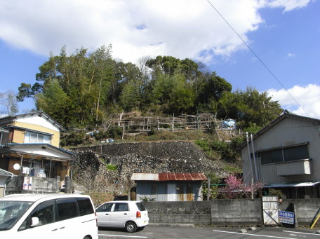 <沿革> 井口氏の居城であるが、築城年代その他については明らかでない。 戦国時代、本山氏が北から勢力を伸ばすと、城主井口勘解由はこれに従った。 永禄三年(1560)、長浜戸の本の戦いで本山茂辰が長宗我部国親・元親父子に 敗れると、井口城も周辺諸城と同じく長宗我部氏の圧力を受けた。 元親の家臣吉田孝頼は、勘解由と親しい間柄であったことから、勘解由を説得 して降伏させようと試みた。しかし勘解由はこれに応じなかったため、孝頼は井口 城へ攻め寄せたが、井口軍は逆に孝頼勢を打ち負かして敗走させた。勘解由が これを追ったところ、今度は長宗我部軍の奇襲に遭い、勘解由は脇腹を弓で射ら れて落命したといわれる。これにより吉田勢の攻撃を抑えられなくなり、城はつい に落ちた。 戦後、元親は孝頼に井口城を与えたとされる。廃城時期についても不明である。 <手記> 井口城は、小高坂山の南にある半独立丘に築かれた城です。三方を小高坂山 の支脈に抱かれるような位置にあり、南側には江ノ口川が流れています。 現在主郭付近にはフェンスが張られ、立ち入ることはできません。城の北側の 保育園脇から公園に沿って階段があり、これを登ると城跡に最も肉薄することが できます。そこからは、主郭と思われる頂部と、その下に帯曲輪と思われる平場 が認められます。 |