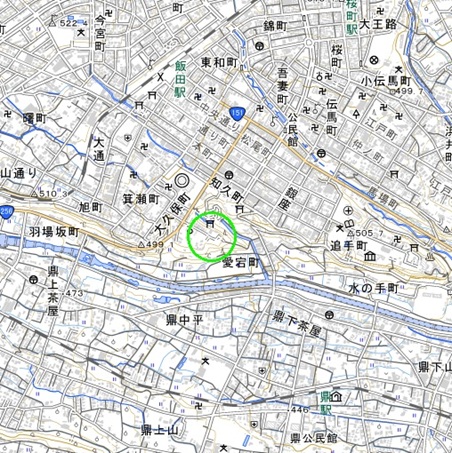 <沿革> 南北朝時代初期に、信濃守護・小笠原貞宗の三男・坂西宗満が居館を設けたのがはじまり とされる。坂西氏は、一説に源平合戦で源義経に屋島への道案内をした阿波国の住人・近藤 六親家が、戦後に飯田郷を領して故地の板野郡板西郷にちなんで坂西を姓としたとされる。 他方で、小笠原氏は鎌倉時代に阿波守護も務めており、この縁で阿波板西氏が小笠原氏の の本領である信濃へ移り、坂西氏と転訛したとも考えられる。逆に阿波の板西城には、戦国 時代後期に信濃赤沢氏の一族とみられる赤沢宗伝が拠っている。 いずれにせよ、宗満が入ったころの飯田郷地頭は阿曽沼氏ついで小山氏であったことが、 当時の資料から明らかとなっている。鎌倉時代に零落した坂西氏の名跡を宗満が継いだとも 考えられるが、小山氏は天授六/康暦二年(1380)の小山義政の乱で一時没落したため、 坂西氏の飯田進出自体がそれ以降であったとする向きもある。 宗満の曽孫政忠は、愛宕神社と土地を交換して新たに飯田城を築いて移り住んだとされる (『伊那温知集』)。また、交換の相手は山伏で、城内の山伏丸の名はこれにちなむともいわ れる(『信陽城主得替記』)。 愛宕城は廃城となり、愛宕神社境内となったとみられるが、詳細は不明である。 <手記> 一般には愛宕城と呼ばれ、今も愛宕稲荷神社が鎮座していますが、上述の経緯より城館の 存続していた間はここに神社はなかったため、当時は飯坂城などと呼ばれていたものと推測 されます。境内の一角に石碑が建っているものの、明瞭な遺構はみられません。境内前方は 急斜面となっており、人工の切岸の名残とも思われます。 飯田城と愛宕城は、どちらも河岸が細く削られた台地先端部を利用していますが、飯田城の 方がより細長く要害地形であるといえるでしょう。この至近距離での移転は、戦乱が深まるなか で、より堅固な城砦を必要としたためと拝察されます。 |